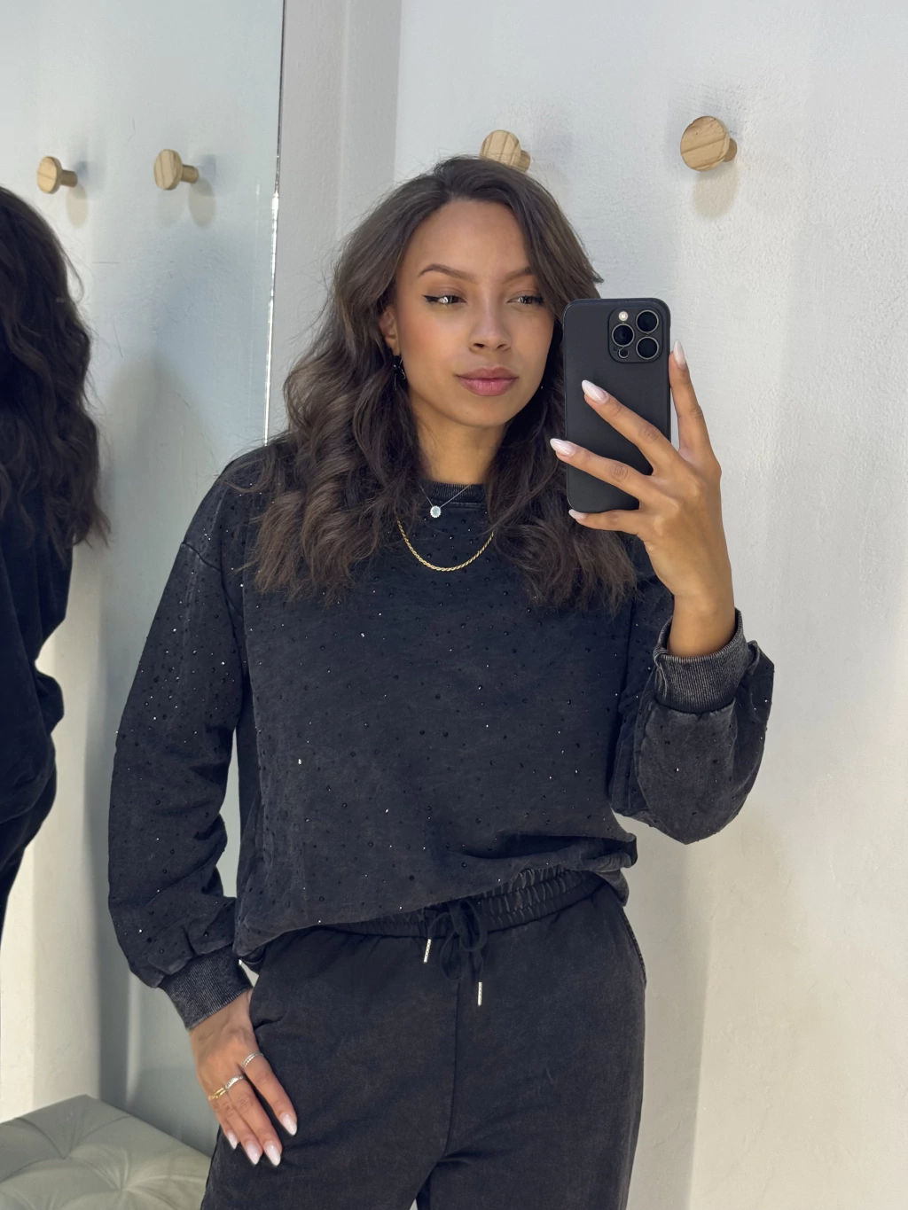 Descubra a CALÇA de Moletinho Estonado com Aplicação de Pedras, a escolha perfeita para quem ama um look confy sem abrir mão do estilo! 🌟